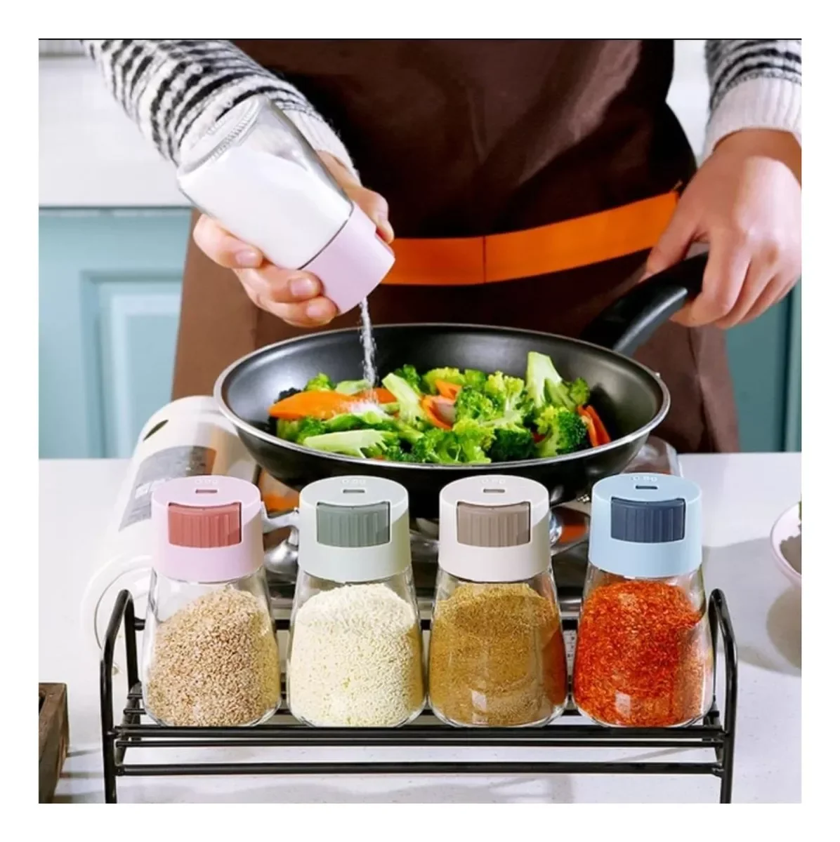 O dosador permite aplicar a quantidade exata de sal, açúcar ou temperos, proporcionando mais controle no preparo dos alimentos.