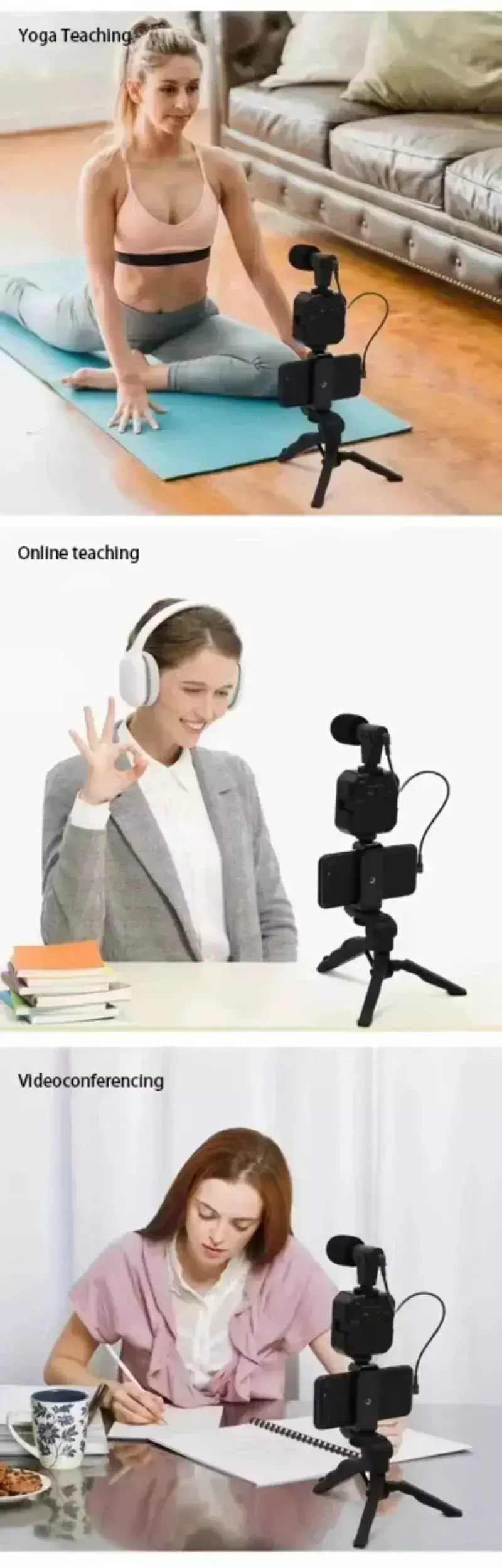 1 * luz de bolso, 1 * tripé, 1 * microfone, 1 * clipe de telefone celular, 1 * cabo de conexão