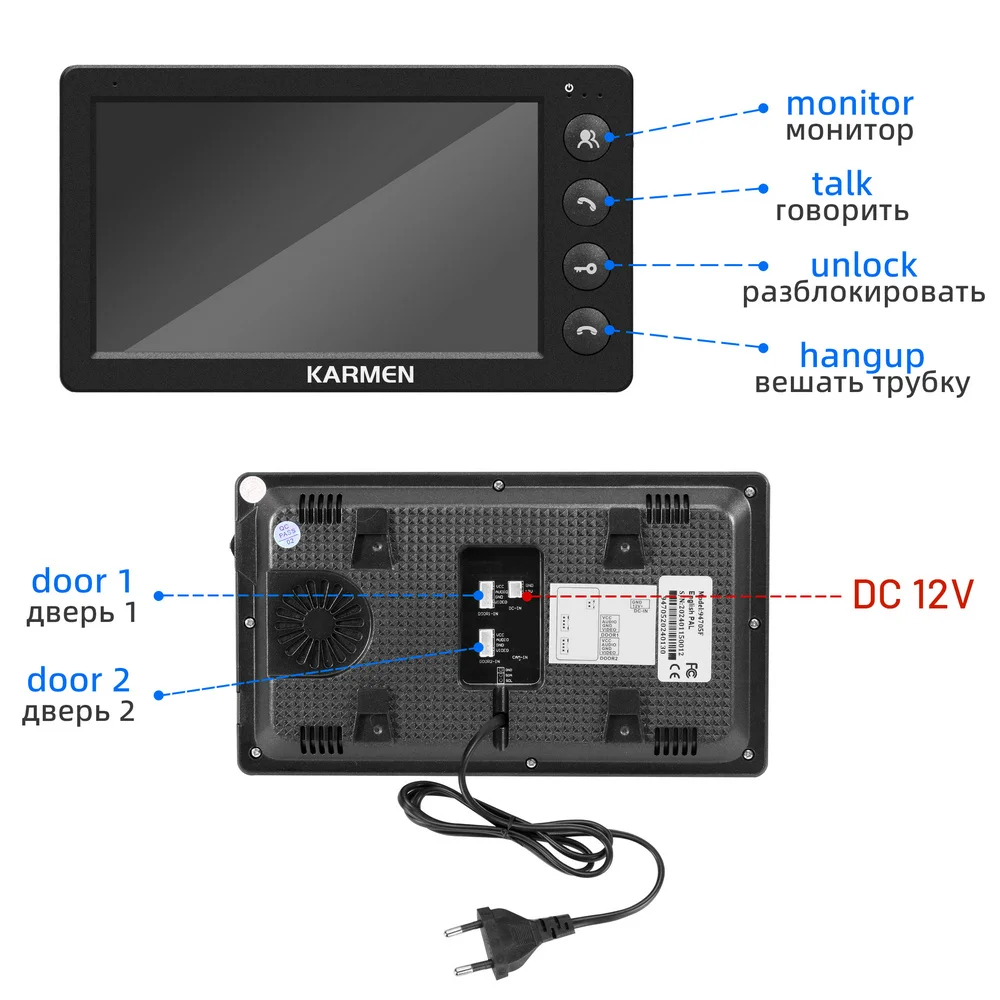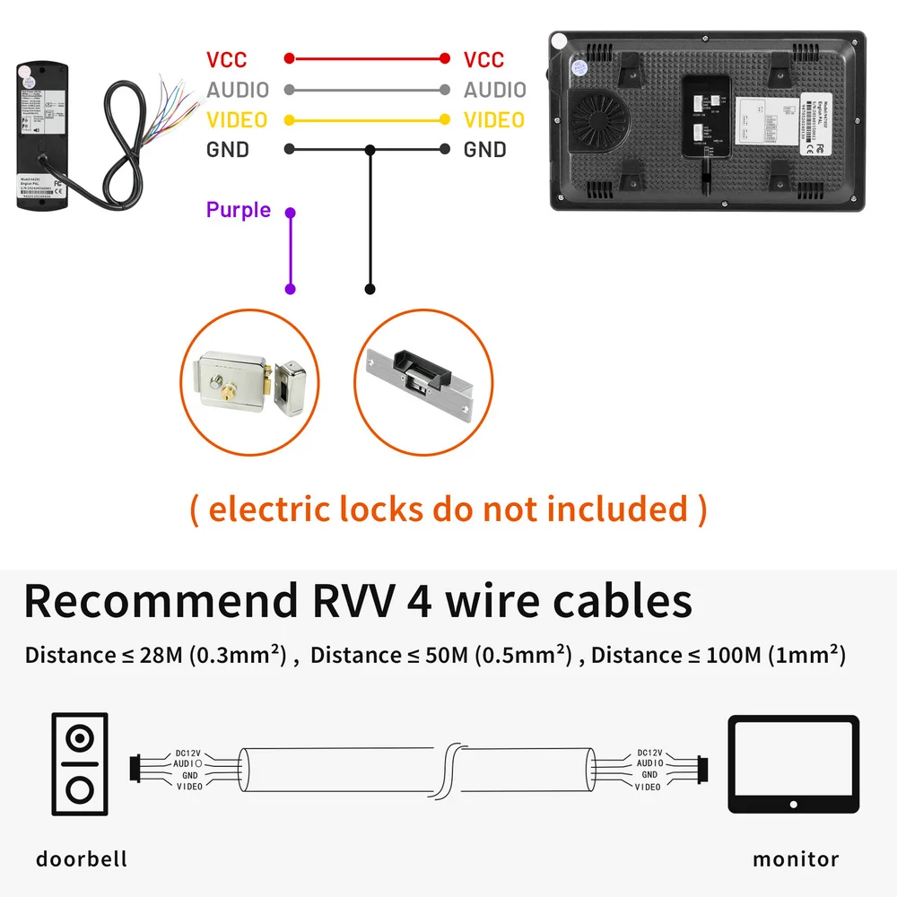 5. 1 monitor supports 2 outdoor doorbell , monitor connect to doorbell by cables;