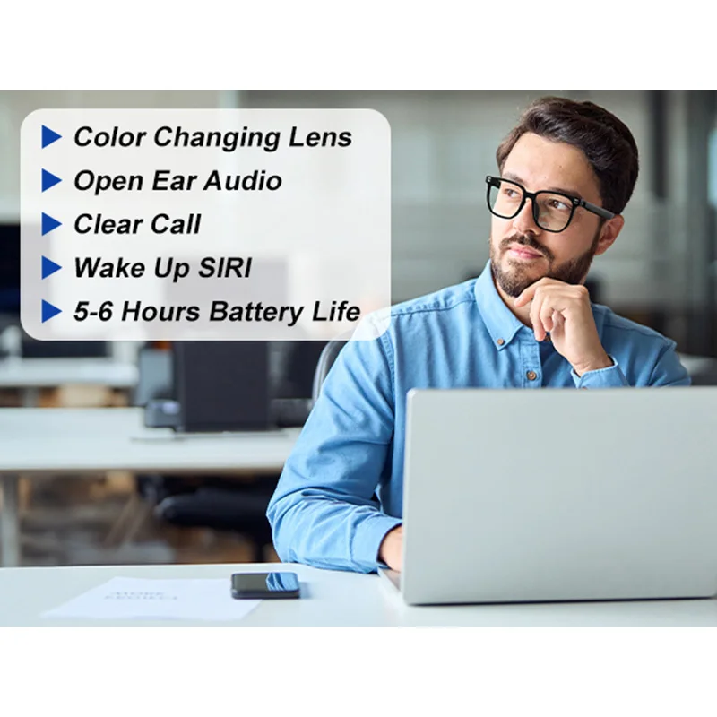 Xiaomi óculos inteligentes bluetooth anti azul audição fotocromática chamadas de música lente que muda de cor funções versáteis óculos elegantes